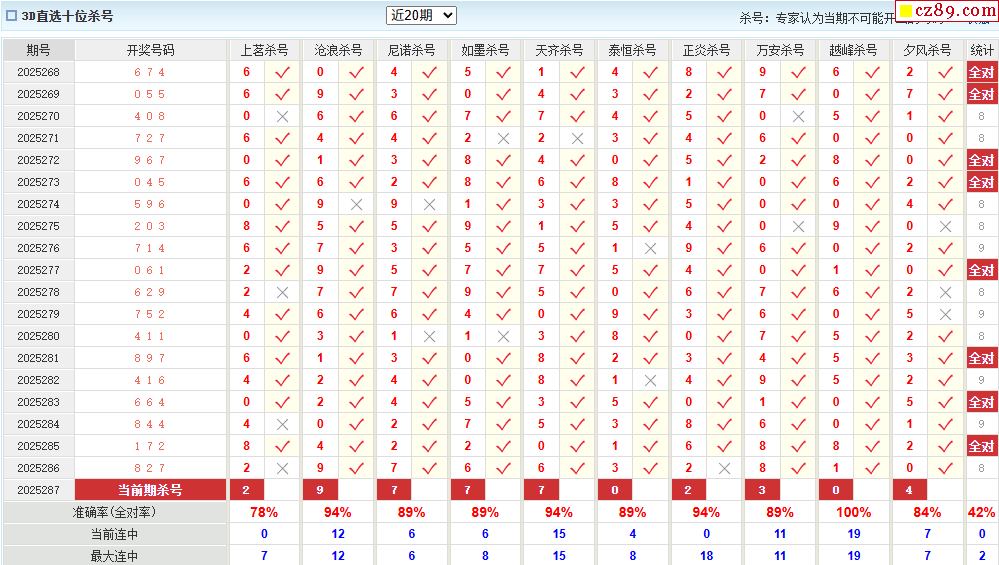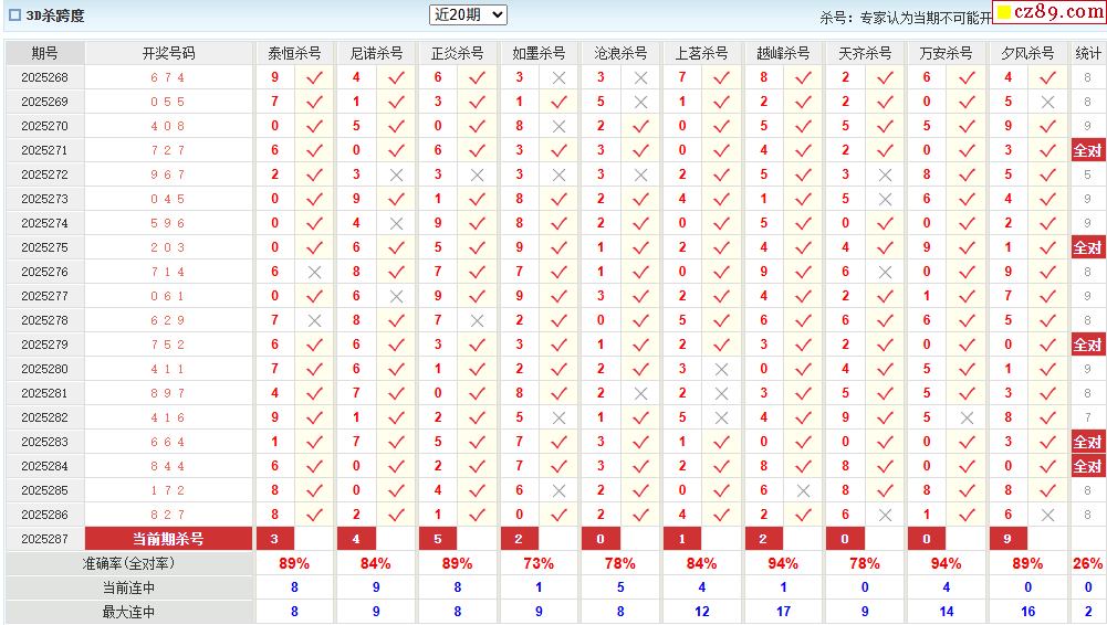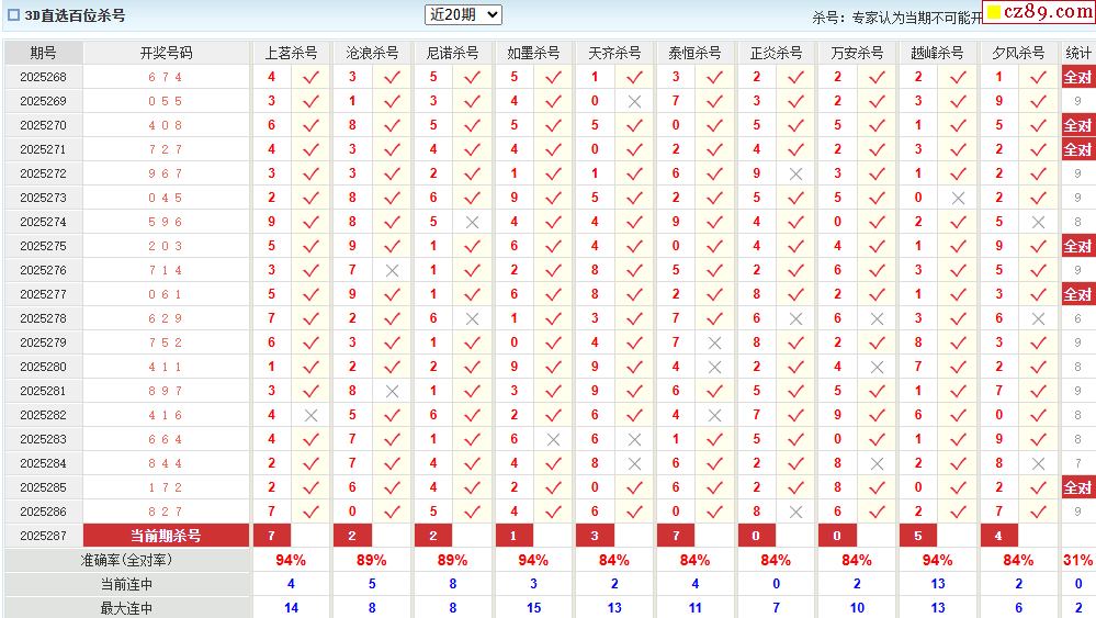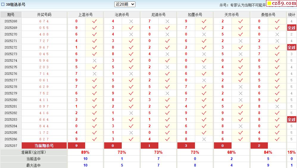 2025年福彩3D287期 百期大数据杀号定三码技巧