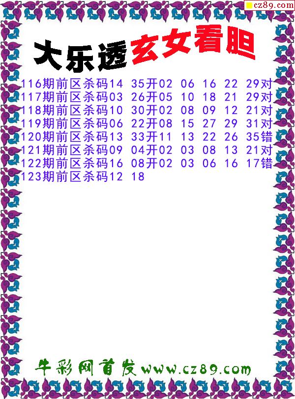 > 大乐透2025123期玄女看胆前区杀号图谜