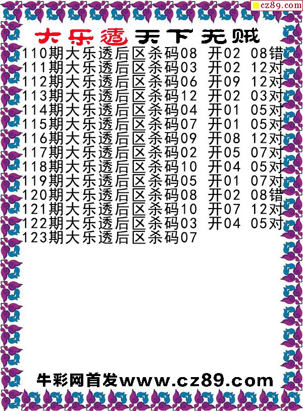 大乐透2025123期天下无贼后区杀号图谜