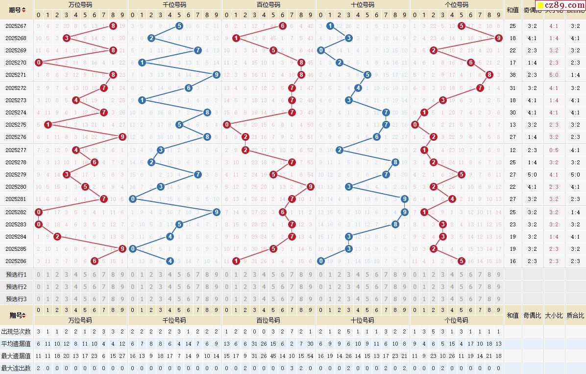 > 287期体彩排列5近期历史号码图表